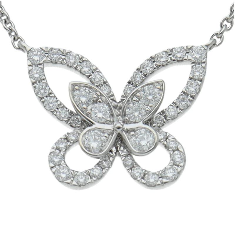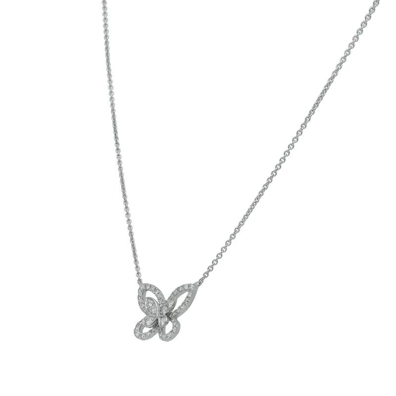 Graff Butterfly Silhouette Diamond Mini Pendant RGP695/D: 0.35ct (Head (approx.): H 1.2 x W 1.6 x D 0.3 cm, Chain: approx. 46.5 cm), 18K White Gold, Polished, Excellent Condition [Pre-owned]