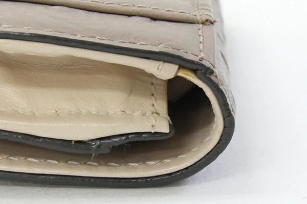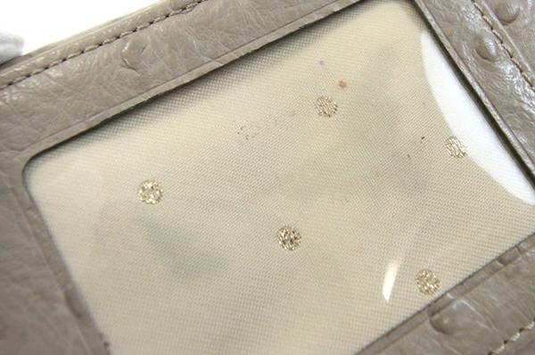 | 状態 | 外側:スレ・薄汚れあり、フチ周りに薄スレあり。クリアフィルム薄黒ずみ・色移り汚れあり。 内側:小キズ、薄汚れあり。ファスナープルのレザーにコーティング割れあり。 金具:小キズ・スレ・クスミあり、特に留め金具に色落ち・スリキズ多数あり。 |