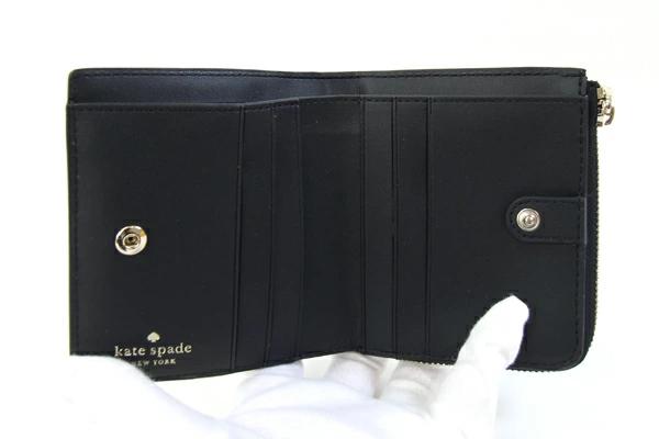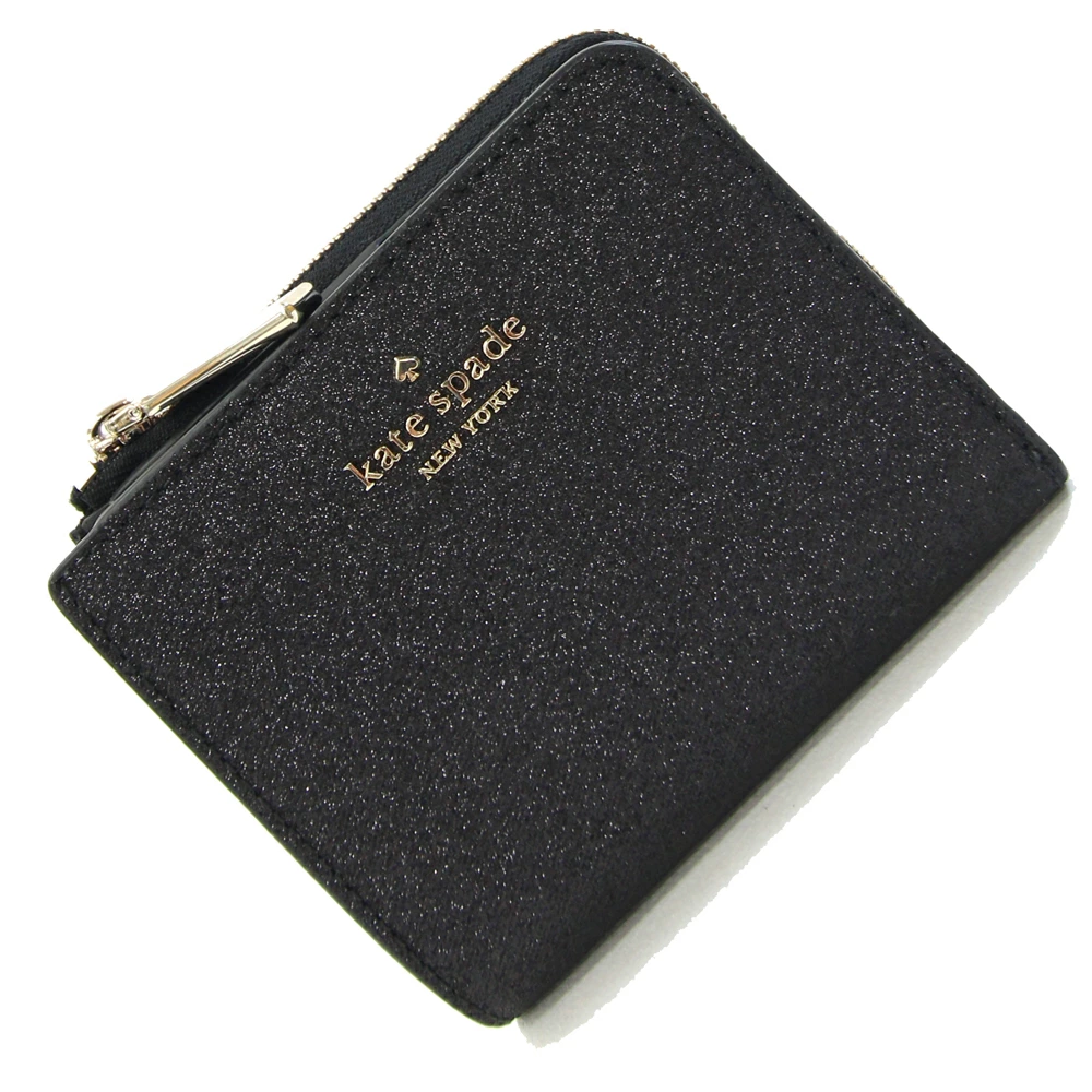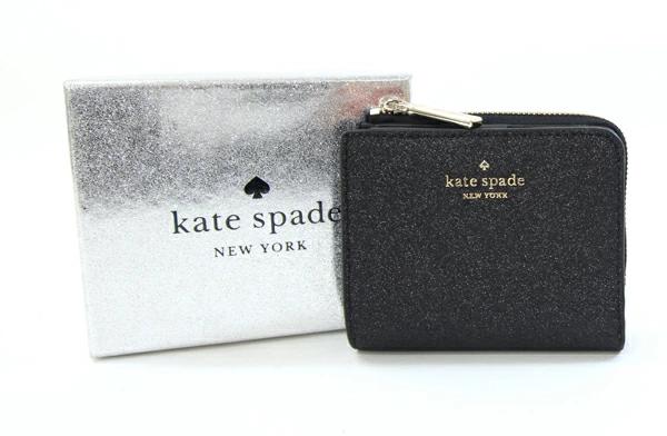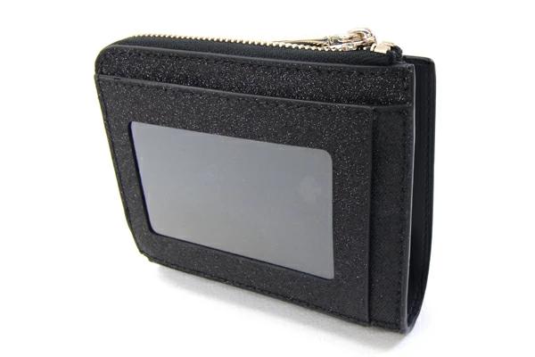 Kate Spade Shimmy Bifold Wallet K4711 in Black Glitter, Pre-owned, Compact Wallet/Mini Wallet with Logo, Women's