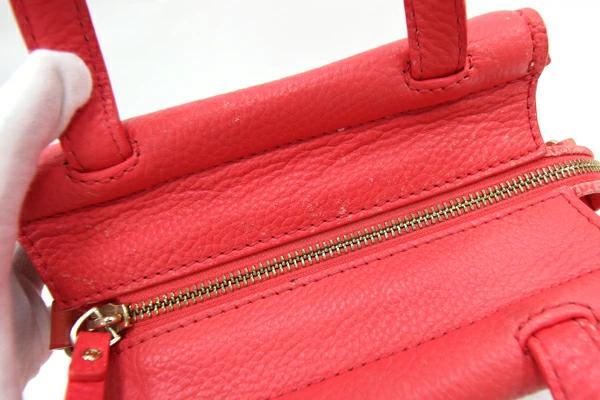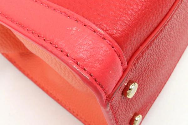 | 状態 | 外側:小キズ、薄汚れあり。持ち手やファスナー部分等スレ多数あり。 ポビーレッド系部分にキズ・スレによる色落ちあり、特にファスナー付近に色落ち多くあり。 内側:薄汚れあり。 金具:小キズ、スレあり。 |