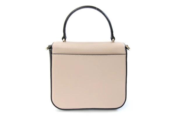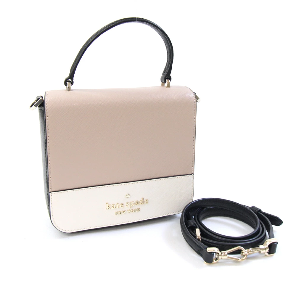 Kate Spade Stacy Square 2-Way Handbag (K7343) in Greige, Ivory, and Black Leather. Pre-owned. Crossbody/Shoulder Bag with Logo. Women's.