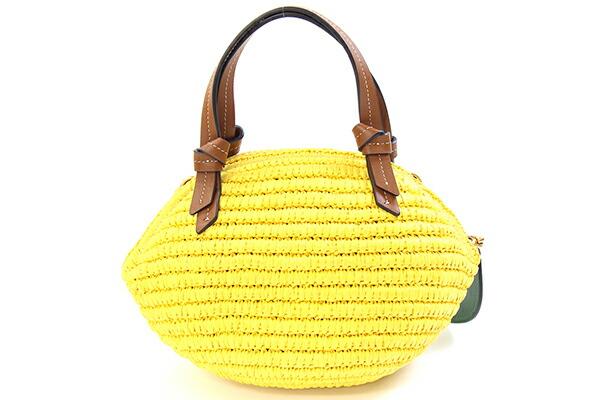 ケイトスペード2WAYハンドバッグレモンドロップストロー3DクロスボディKB972イエローブラウンペーパーストローレザー中古ショルダーバッグ斜め掛けロゴレディースkatespade