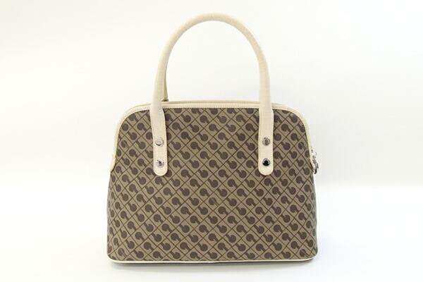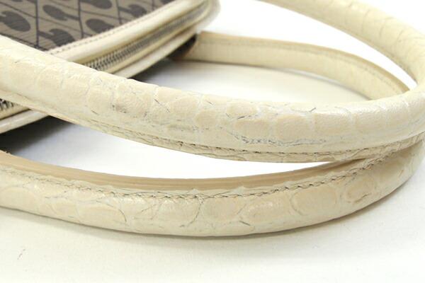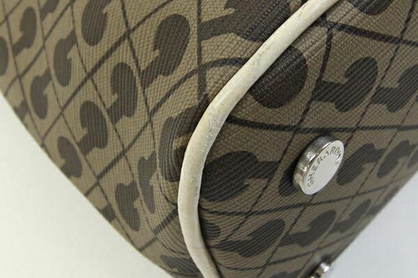 ゲラルディーニハンドバッグベージュアイボリーPVCレザー中古手提げ鞄レディース女性GHERARDINI