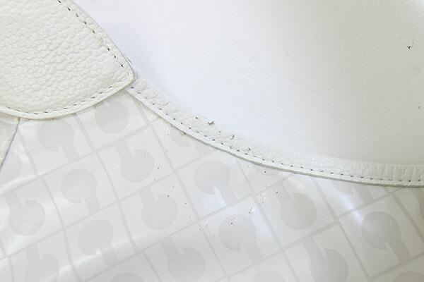 外側:入口のレザーに細かい穴・めくれ・薄汚れあり。底角に僅かなスレあり。