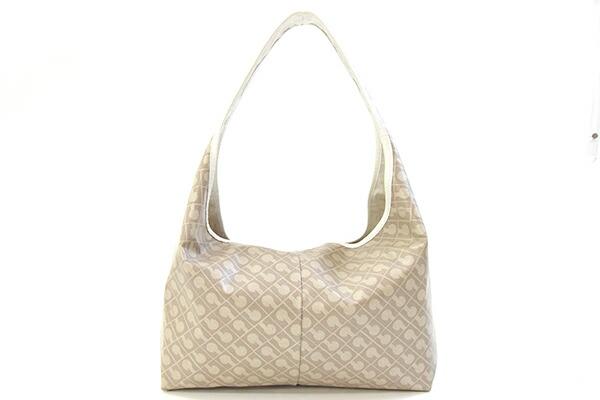 ゲラルディーニワンショルダーバッグベージュアイボリーポリエステルポリウレタンコーティングレザー中古リバーシブル軽量肩掛け鞄レディースGHERARDINI