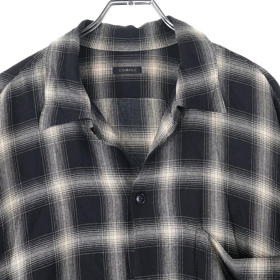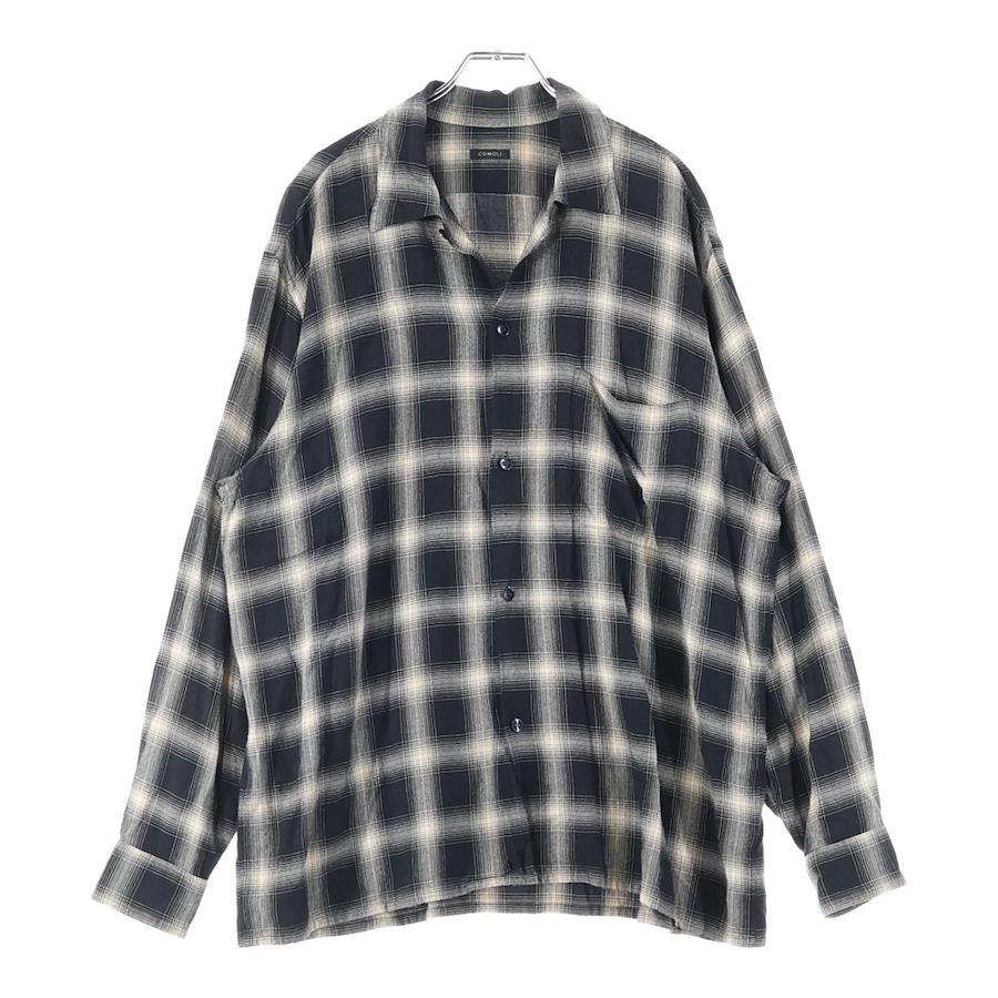 [モデル]レーヨンチェック オープンカラー長袖シャツ X01-02008 ブラック