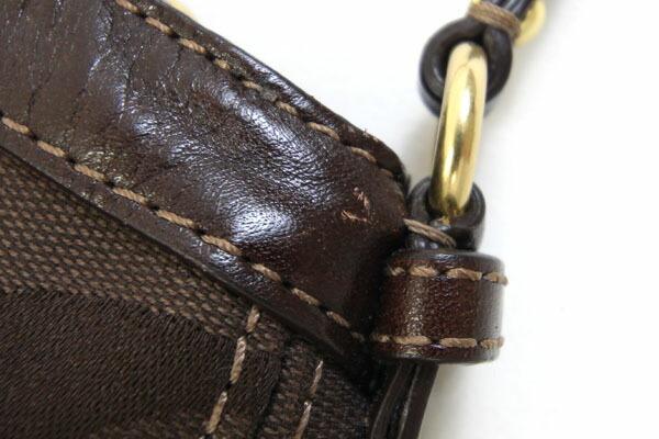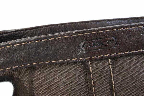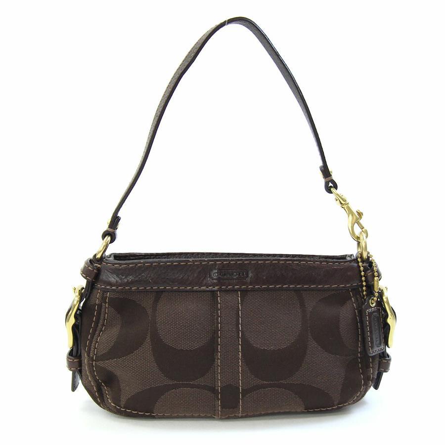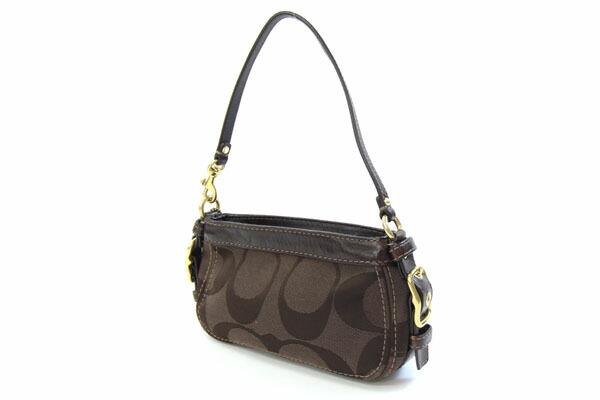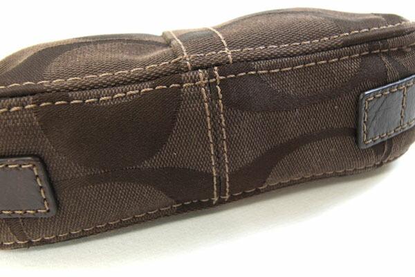 コーチアクセサリーポーチシグネチャーダークブラウンキャンバスレザー中古ミニバッグポーチレディース女性COACH