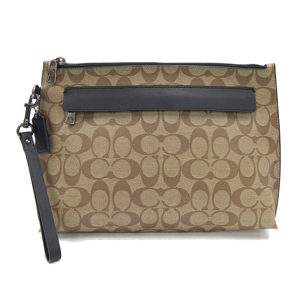 Pre-owned Coach Signature Clutch Bag F29508 in Beige and Black PVC Leather with Strap. Men's.