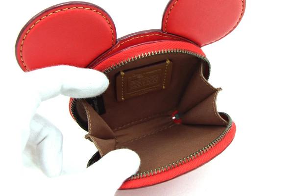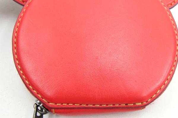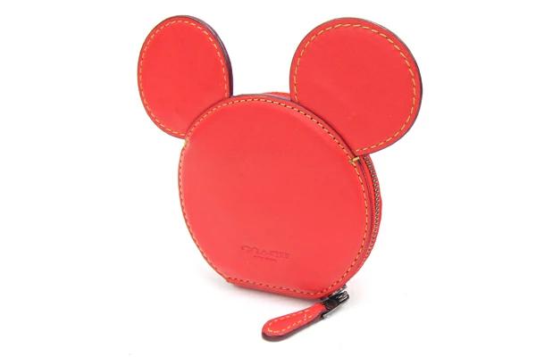 Pre-owned Coach Disney Mickey Mouse coin case, red leather, F59071, compact wallet, women's.
