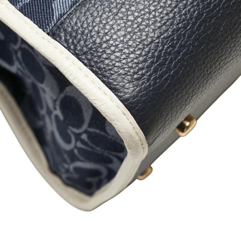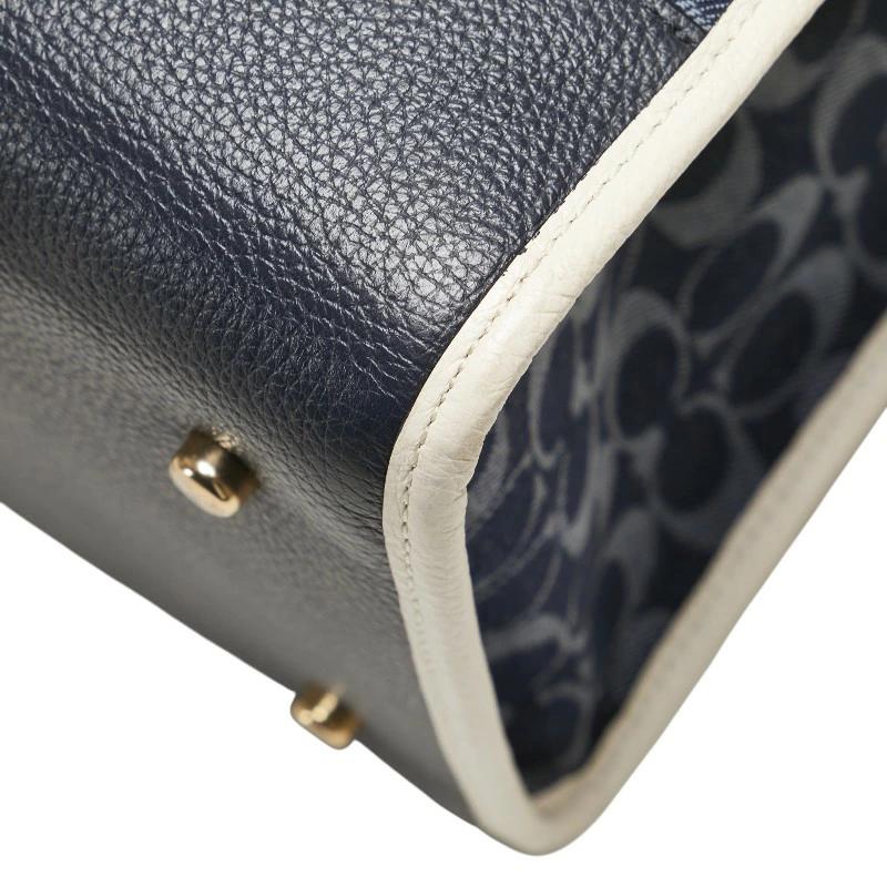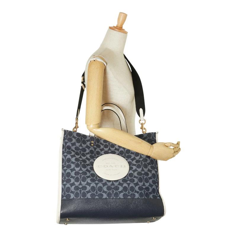 Pre-owned Coach Signature Dempsey Tote/Shoulder Bag, 2-Way, C2827, Blue, White, Denim, and Leather, Women's.