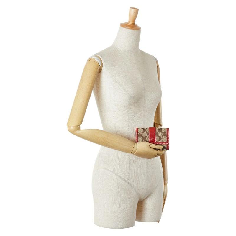 Pre-owned Coach Signature Bifold Wallet in Beige and Red Canvas and Leather.