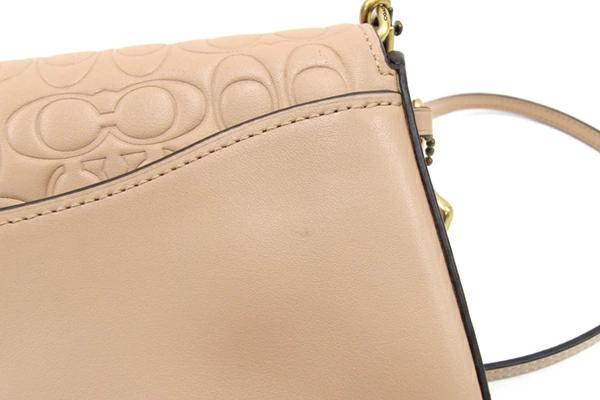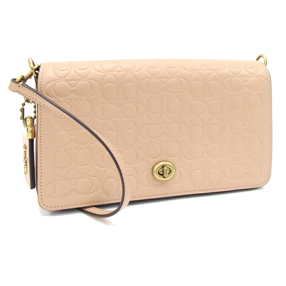 Pre-owned Coach Signature Dinky Shoulder Bag 30427 in Beige Leather with Turnlock Closure.
