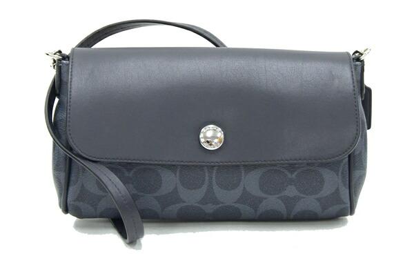 コーチショルダーバッグシグネチャーリバーシブルF59534ネイビーブルーPVCレザー中古斜めがけ肩がけ青レディースCOACH