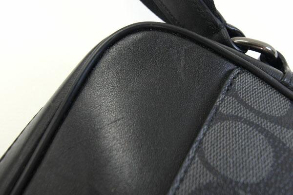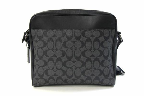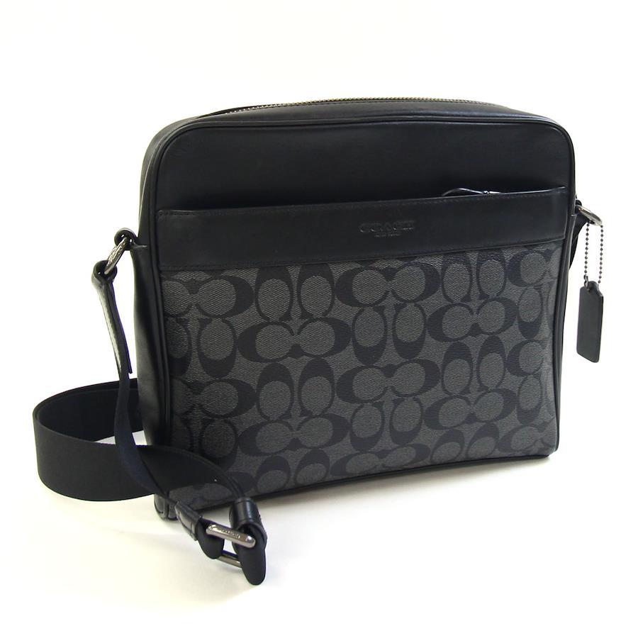 コーチショルダーバッグシグネチャーF28456グレーブラックPVCレザー中古斜め掛けクロスボディロゴメンズCOACH