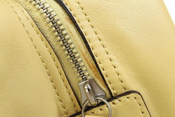 | 状態 | 外側:型崩れ多少あり。所々薄汚れ、薄キズあり。ファスナー生地に茶系の接着汚れあり。 内側:スレ、薄汚れあり。 金具:小キズ、クスミあり。 |