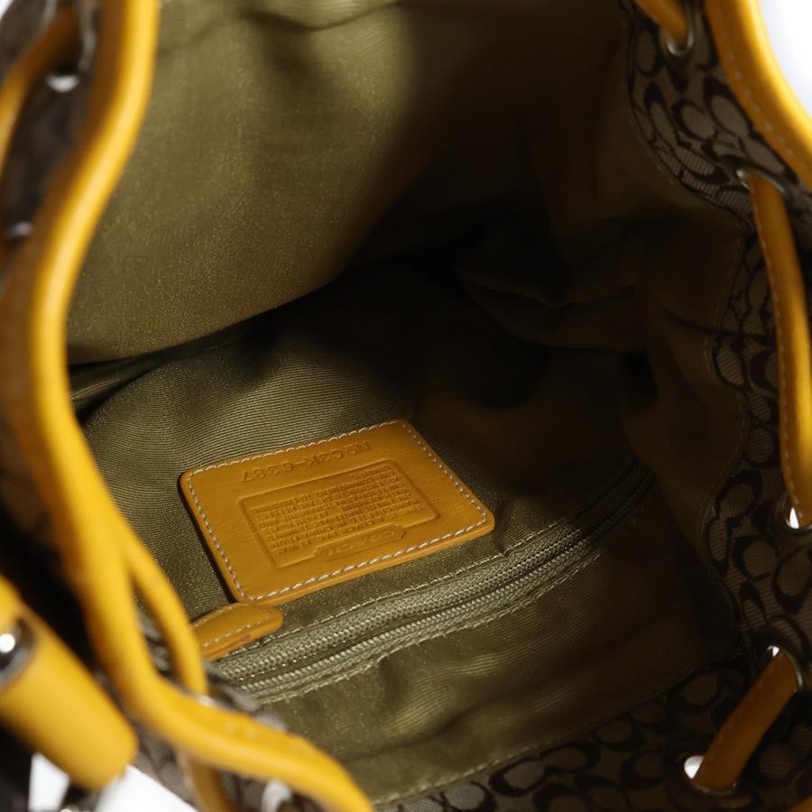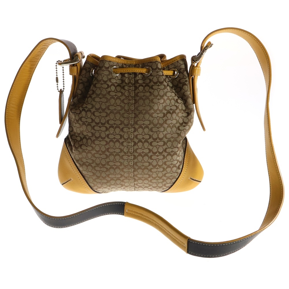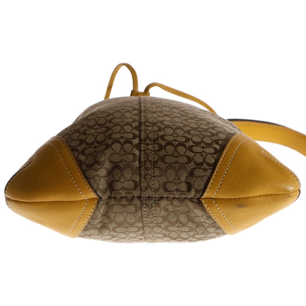 [モデル]ショルダーバッグ 巾着バッグ ベージュ×イエロー レザー×キャンバス シルバー金具
