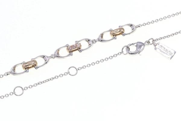 コーチネックレスリンクドシグネチャー5974シルバーゴールドメタルラインストーン中古ペンダントアクセサリーロゴレディースCOACH