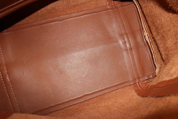 | 状態 | 外側:所々小キズ、スレ、薄汚れあり。底角、持ち手、入口のフチ周りはスレによる色褪せあり。持ち手のフチ毛羽立ちあり。 内側:小キズ、スレ、薄汚れ、毛羽立ちあり。 金具:多少小キズ・スレあり。タグのボールチェーンに変色あり。 |