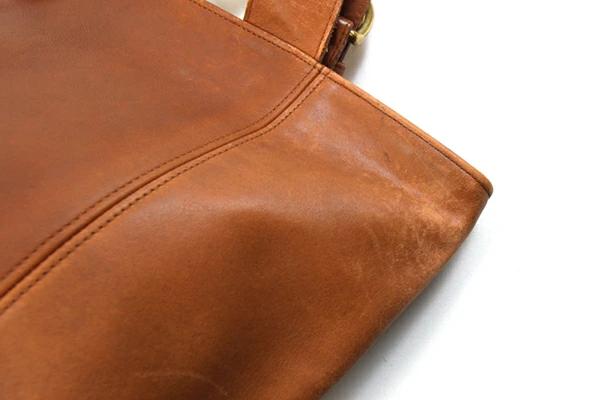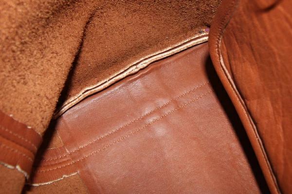| 状態 | 外側:全体的色マダラあり。キズ・スレ・薄汚れが多数あり、フチや角にスリ減り・色落ちあり。ハンドル革に硬直感・細かなヒビ・フチに毛羽立ちあり。 内側:小キズ・スレ・薄汚れ・毛羽立ちあり。 金具:小キズ・スレ・クスミ・変色/メッキハガレちあり。 |
