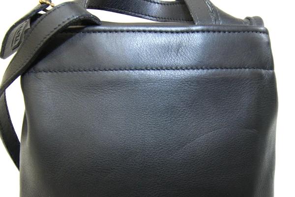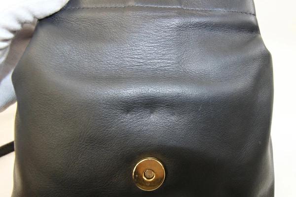 | 状態 | 外側:型崩れ多少あり。所々小キズ・薄スレ・底角にスレによる色褪せあり。ショルダーのフチにスレ・毛羽立ちあり。 内側:小キズ・スレ・薄汚れ・毛羽立ち・色褪せあり。 金具:小キズスレ・クスミあり、チャームのボールチェーンに変色あり。 |