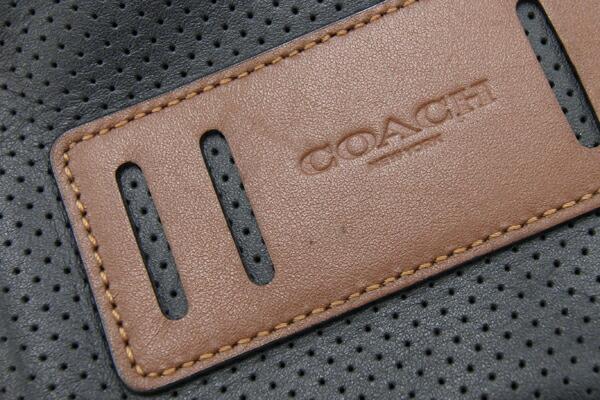 コーチボディバッグF56877ブラックブラウンレザーナイロン中古ショルダー斜め掛けパンチングロゴメンズ男性COACH