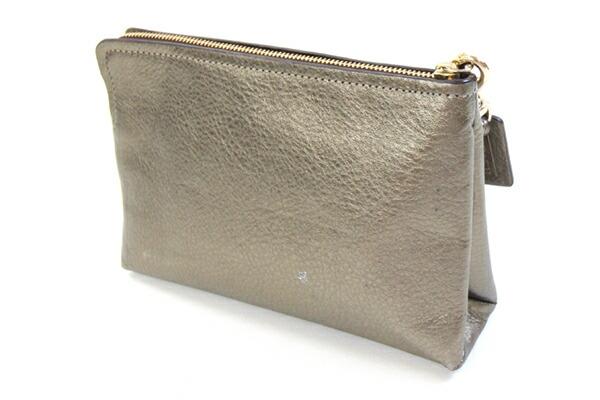 コーチポーチ52114アンティークゴールド系メタリックレザー中古クラッチバッグストラップ付小物入れコスメポーチレディースCOACH