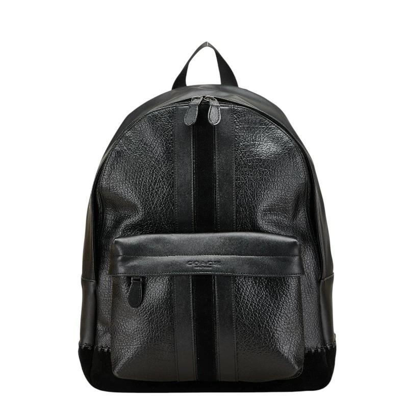 Pre-owned Coach logo backpack in black leather and sweatshirt.