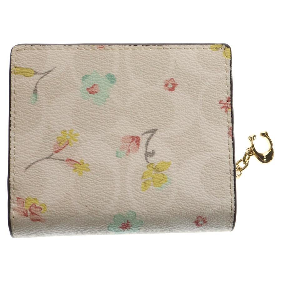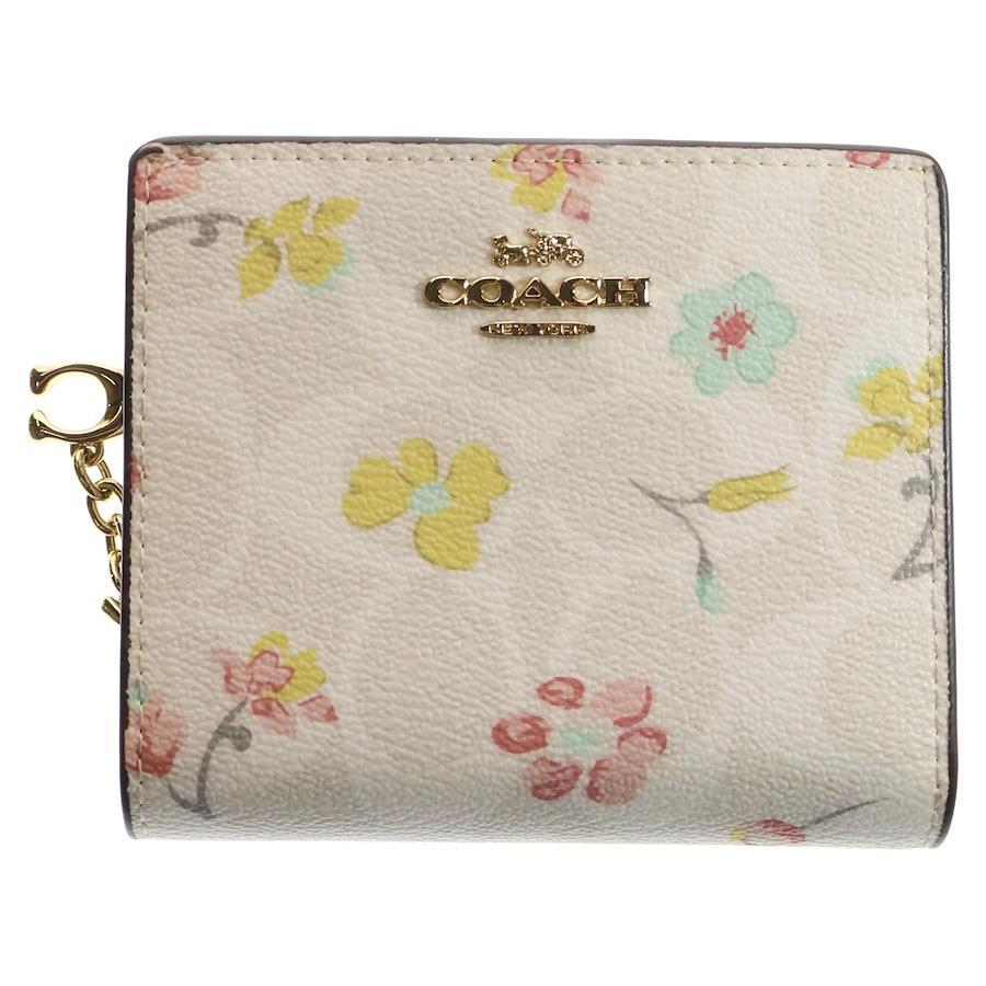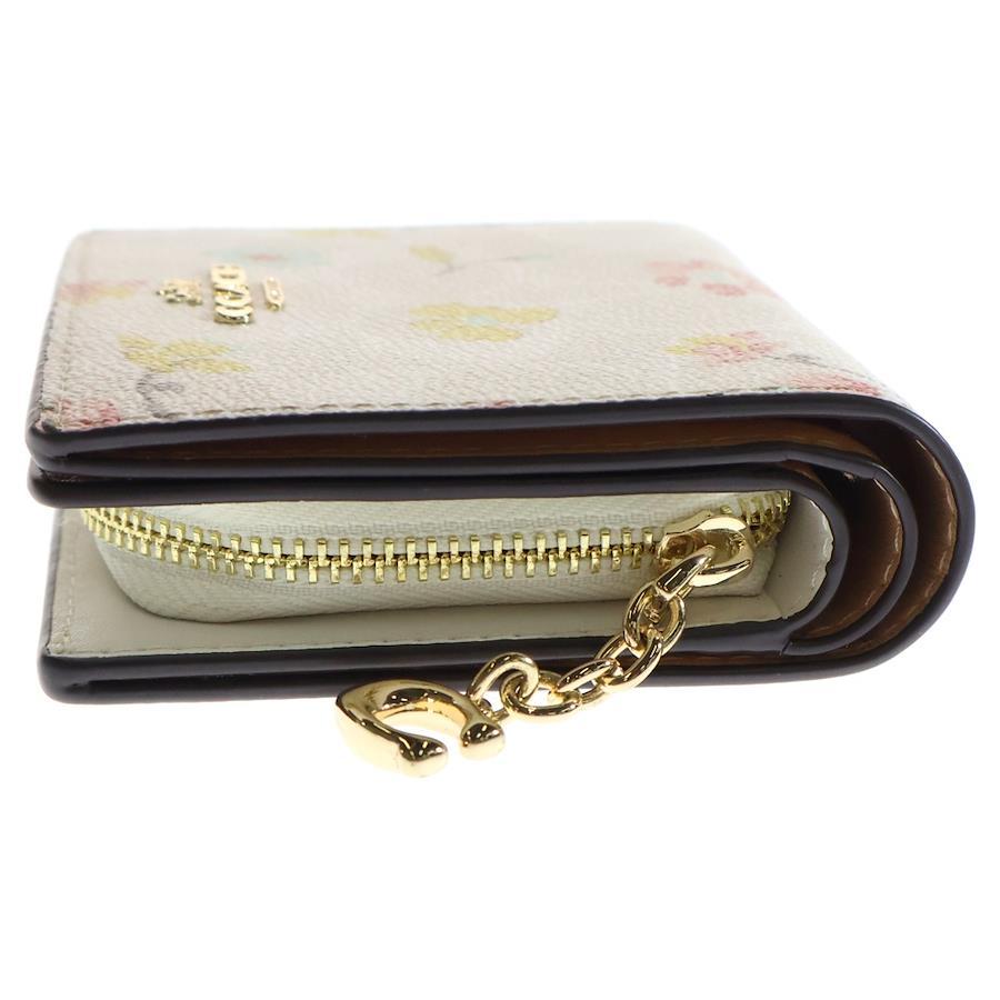 [モデル]二つ折り財布 コンパクトウォレット コインケース ゴールド金具 花柄 ホワイト レザー FC8704