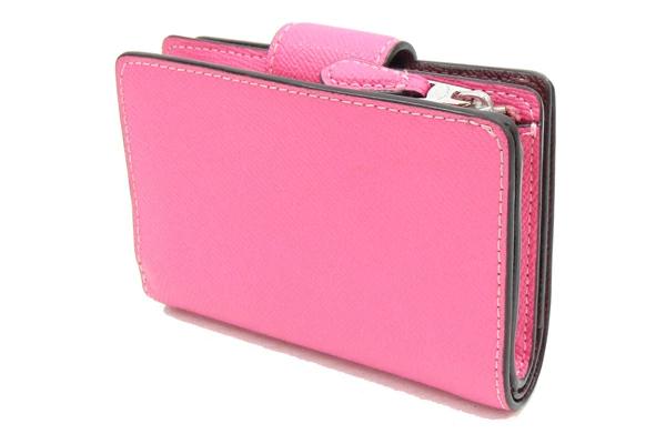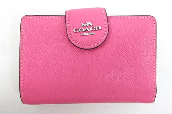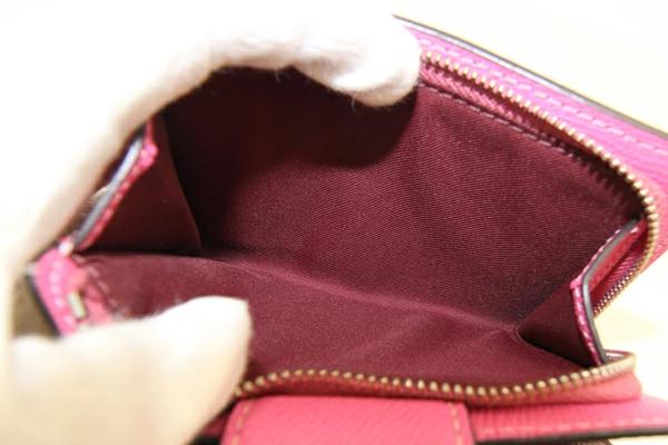 Pre-owned Coach Medium Corner Zip Wallet F06390 in Pink and Bordeaux. Compact wallet with logo and two-tone accents. Women's.