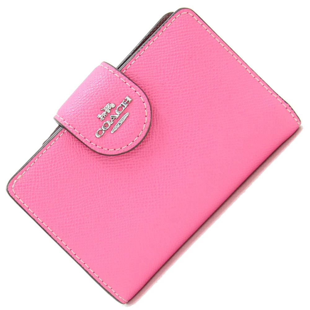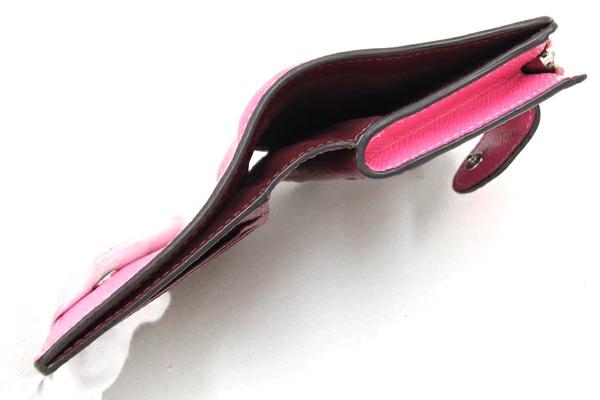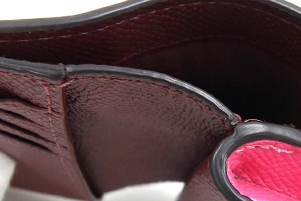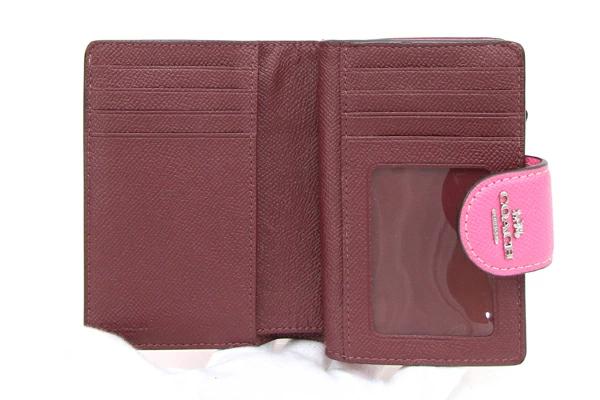 Pre-owned Coach Medium Corner Zip Wallet F06390 in Pink and Bordeaux. Compact wallet with logo and two-tone accents. Women's.