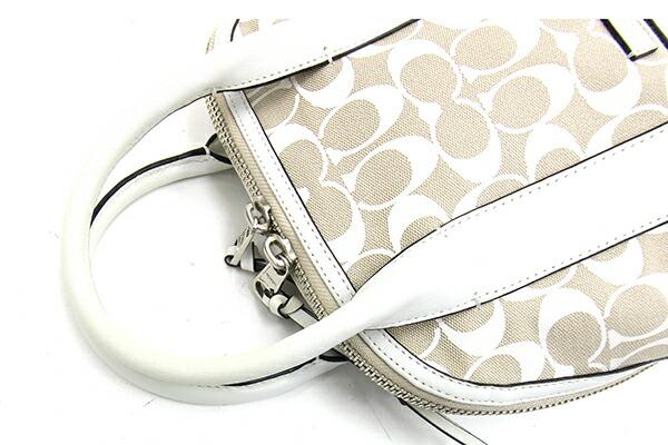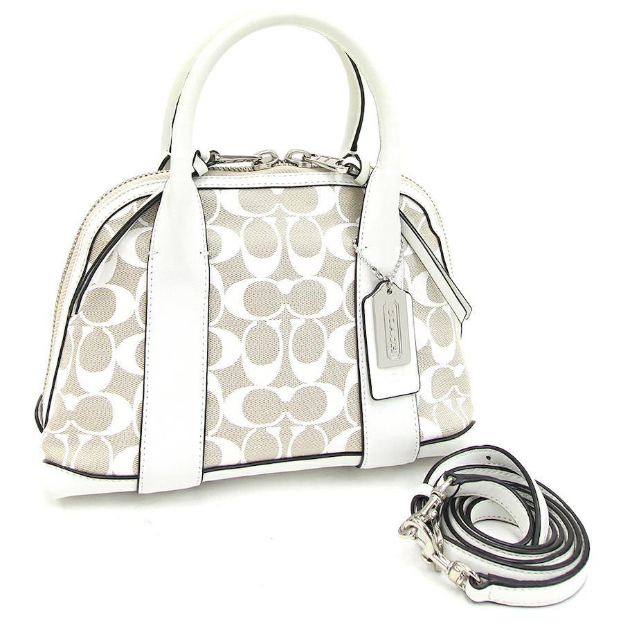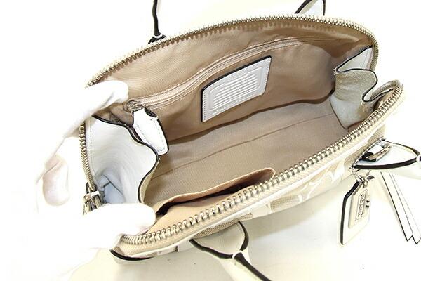 コーチ2WAYハンドバッグブリーカープリンテッドシグネチャーミニプレストンサッチェル30167ライトカーキホワイトキャンバスレザー中古ショルダーバッグ斜め掛けミニバッグレディースCOACH