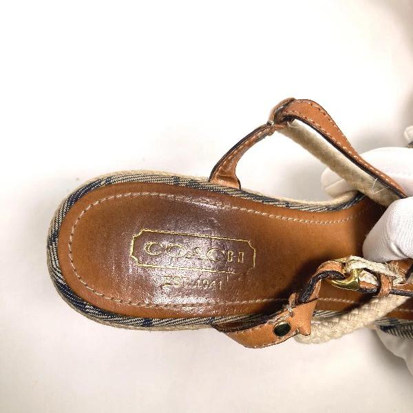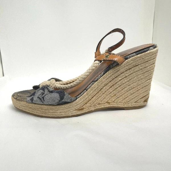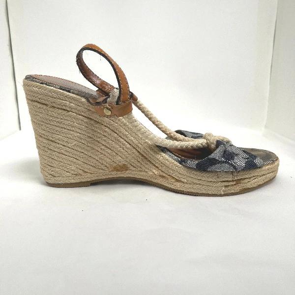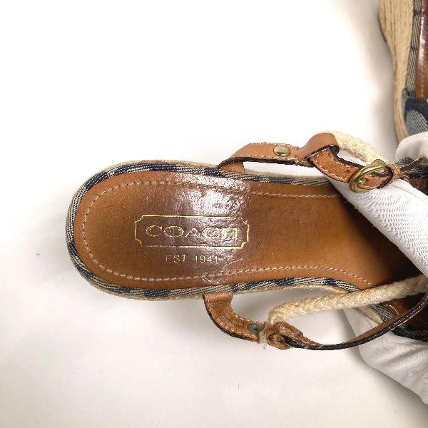 Pre-owned Coach wedge sandals with ankle straps, denim, in stainless steel.