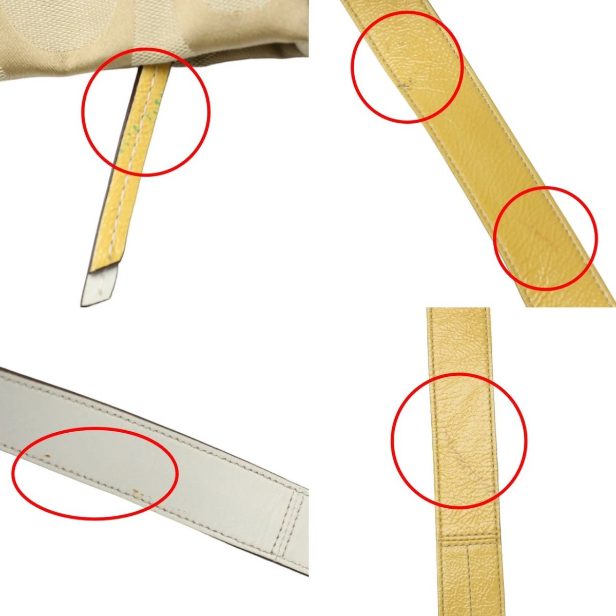 | 外側 | ランク:AB 表面:薄汚れ、汚れ、スレ 切り替えし部分:薄汚れ、汚れ、スレ ハンドル・ストラップ:小キズ、汚れ、スレ、シワ コーナー:薄汚れ、汚れ、スレ 角や底面、表面にスレや汚れあります(画像7〜11枚目参照) ハンドルや両サイドのベルト通し部分などのエナメルに汚れやスレ、シワあります(画像12-14枚目参照) |