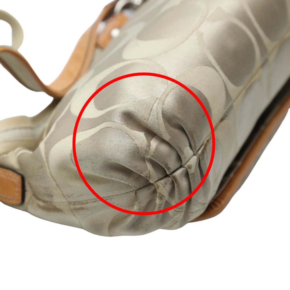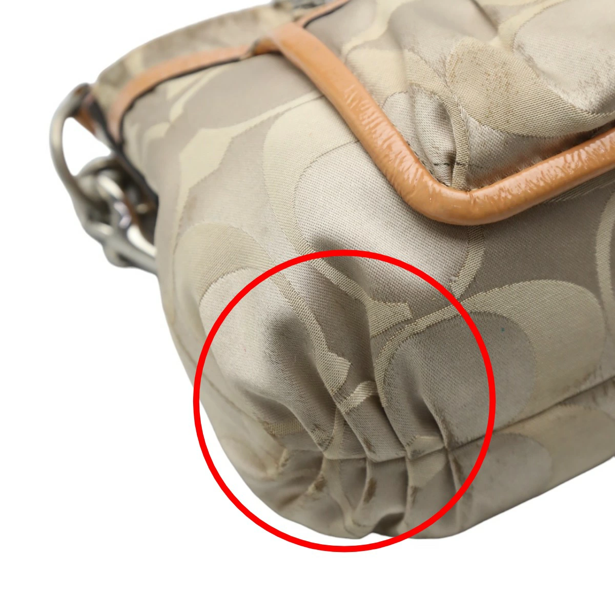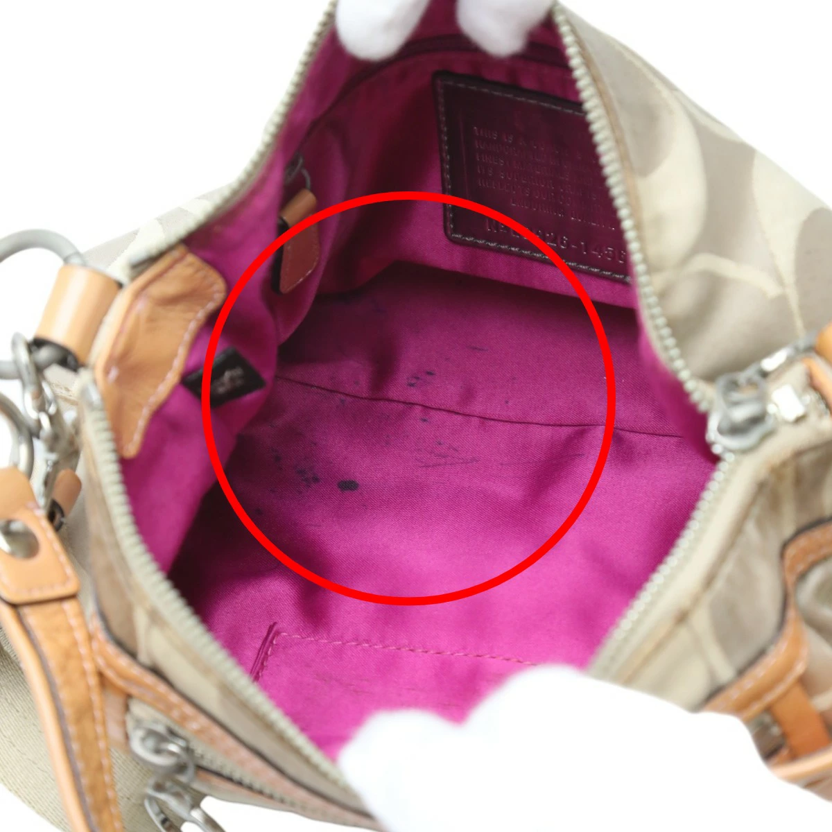 | 外側 | ランク:C 表面:小キズ、汚れ、スレ 切り替えし部分:汚れ ハンドル・ストラップ:汚れ、シワ コーナー:薄汚れ、スレ 角や表面にスレや僅かな汚れがあります。(画像1-13枚目参照) |