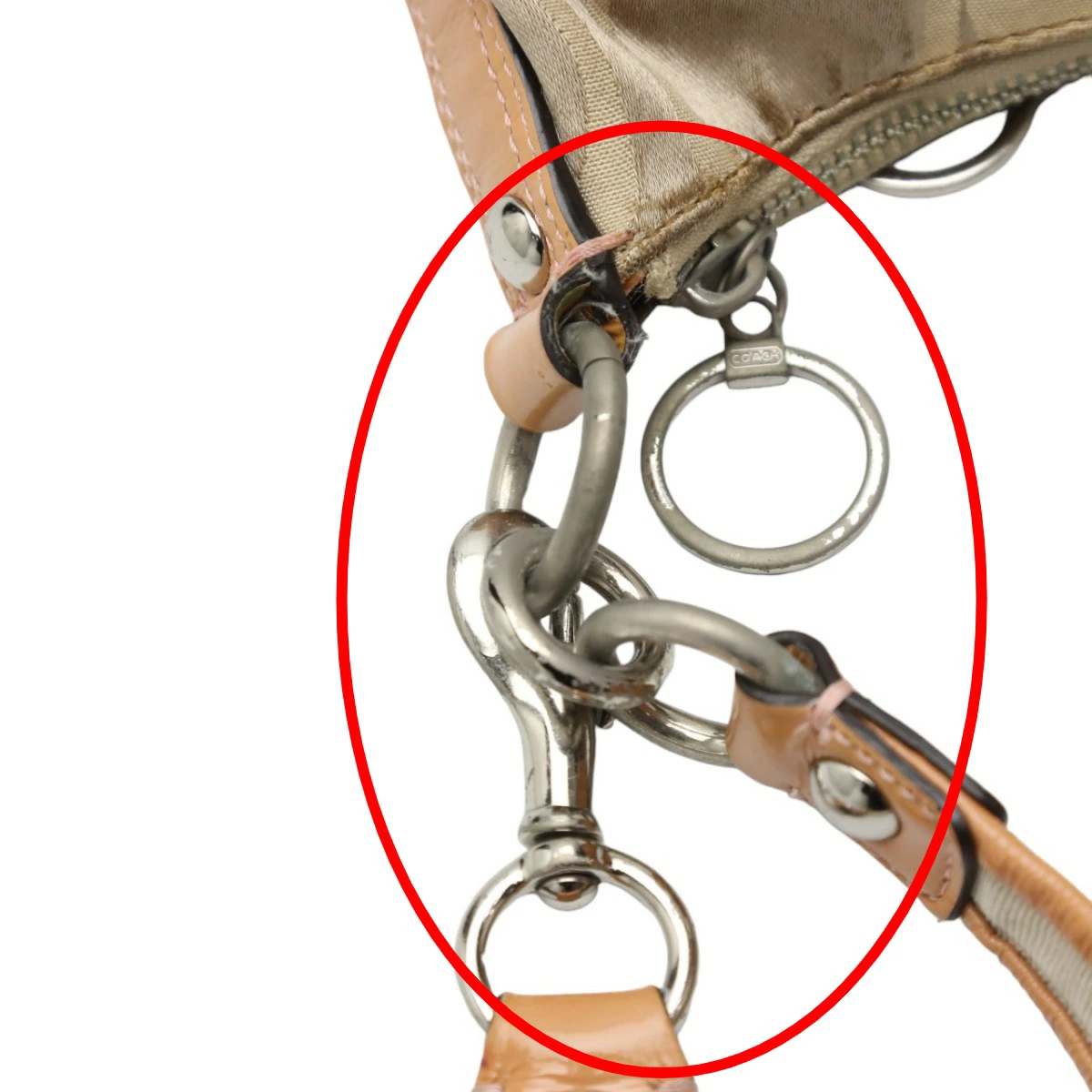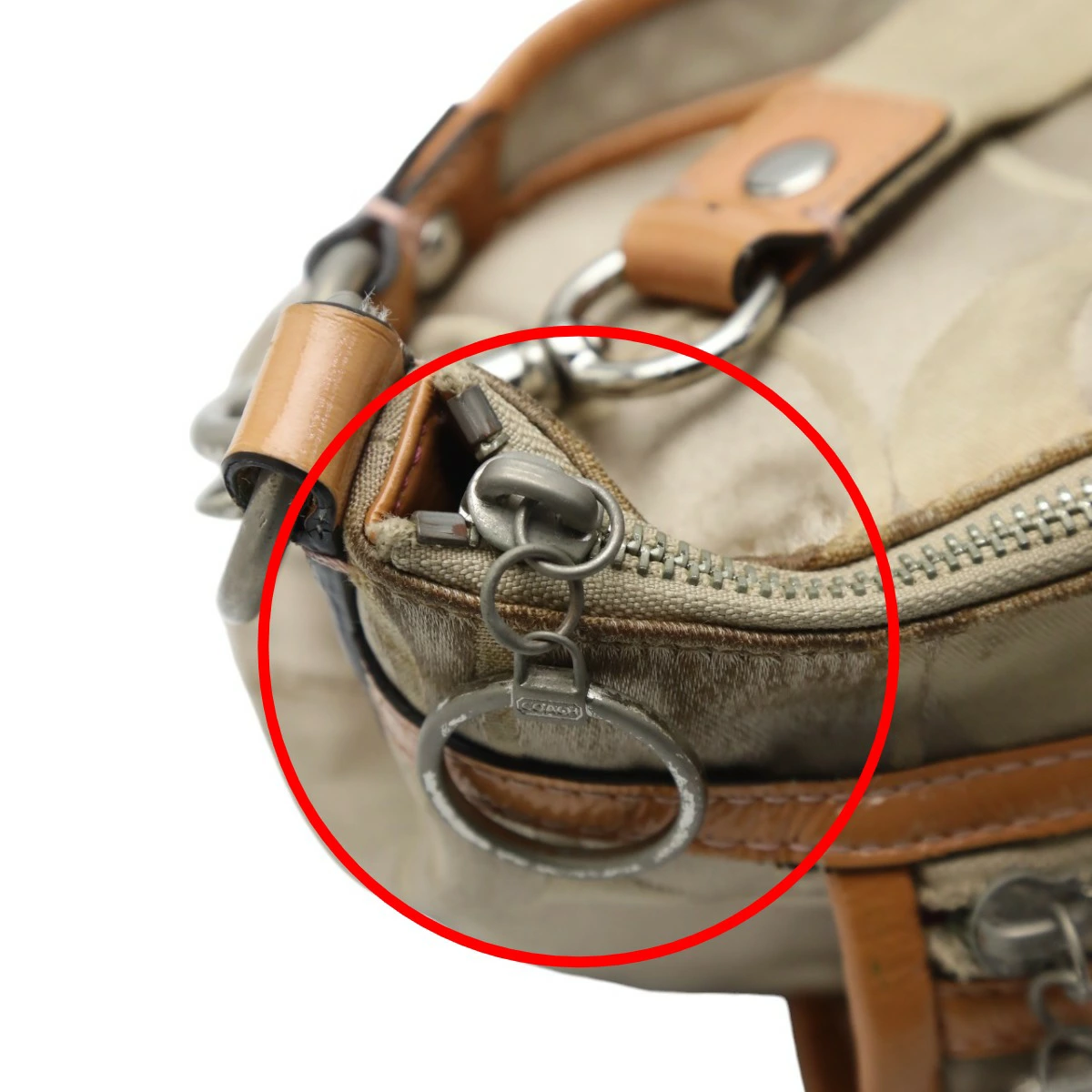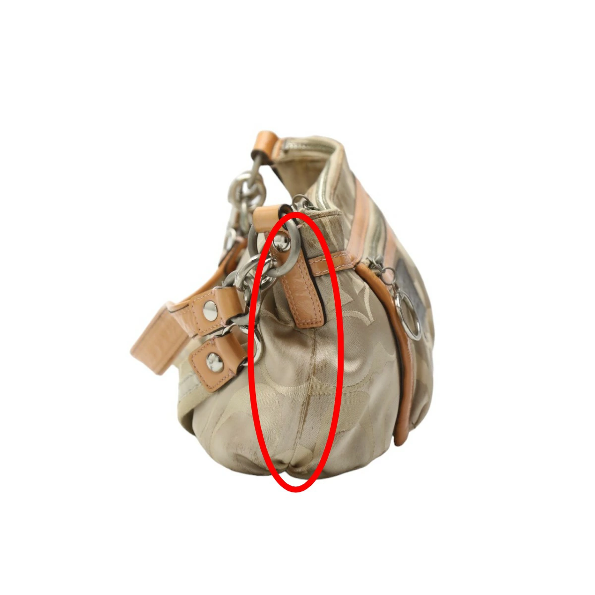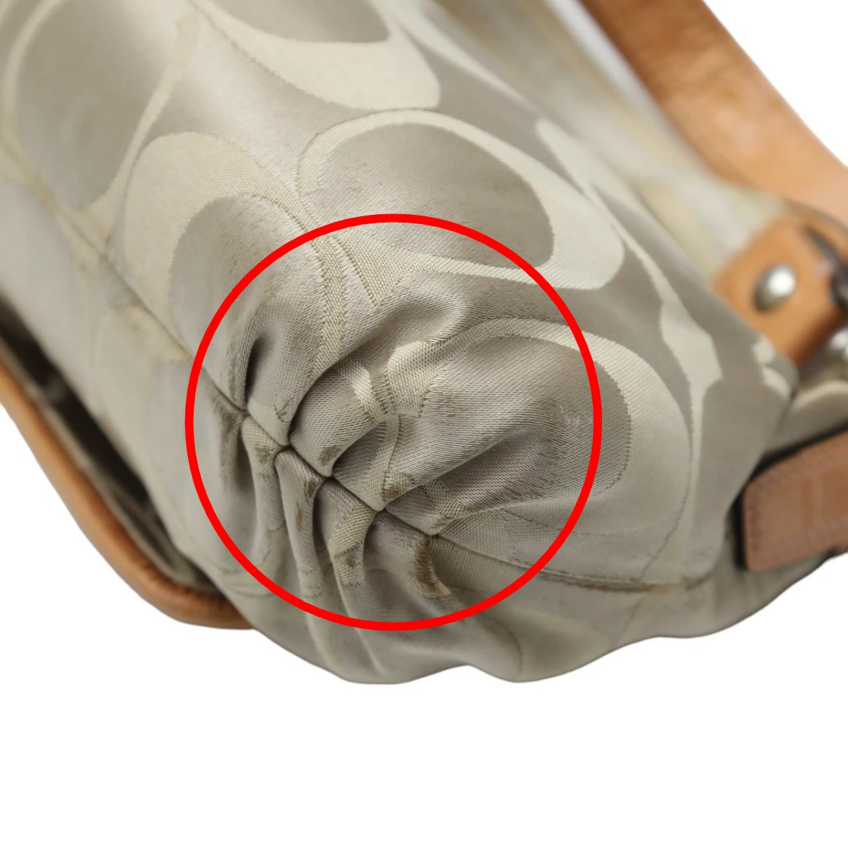| 外側 | ランク:C 表面:小キズ、汚れ、スレ 切り替えし部分:汚れ ハンドル・ストラップ:汚れ、シワ コーナー:薄汚れ、スレ 角や表面にスレや僅かな汚れがあります。(画像1-13枚目参照) |