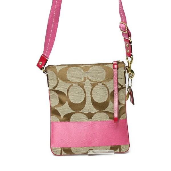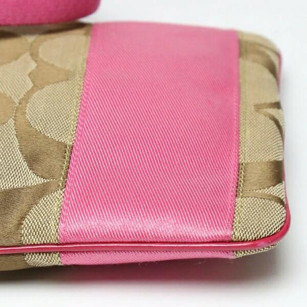 コーチ COACH ショルダーバッグ 外ポケット付き シグネチャー 斜めかけ レザー 10129 カーキ×ピンク 【SS】 【中古】