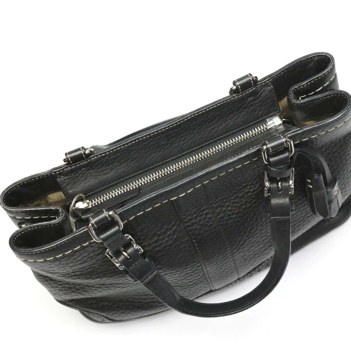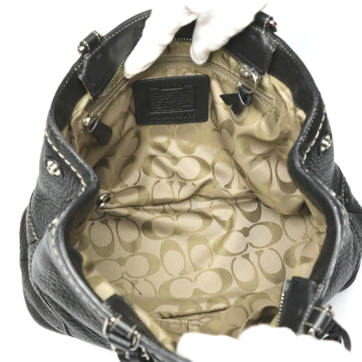 | 外側 | ランク:AB 表面:汚れ ハンドル・ストラップ:薄汚れ コーナー:スレ 底面に汚れあり(画像6枚目参照) 四つ角部分にスレあり(画像8〜10枚目参照) |