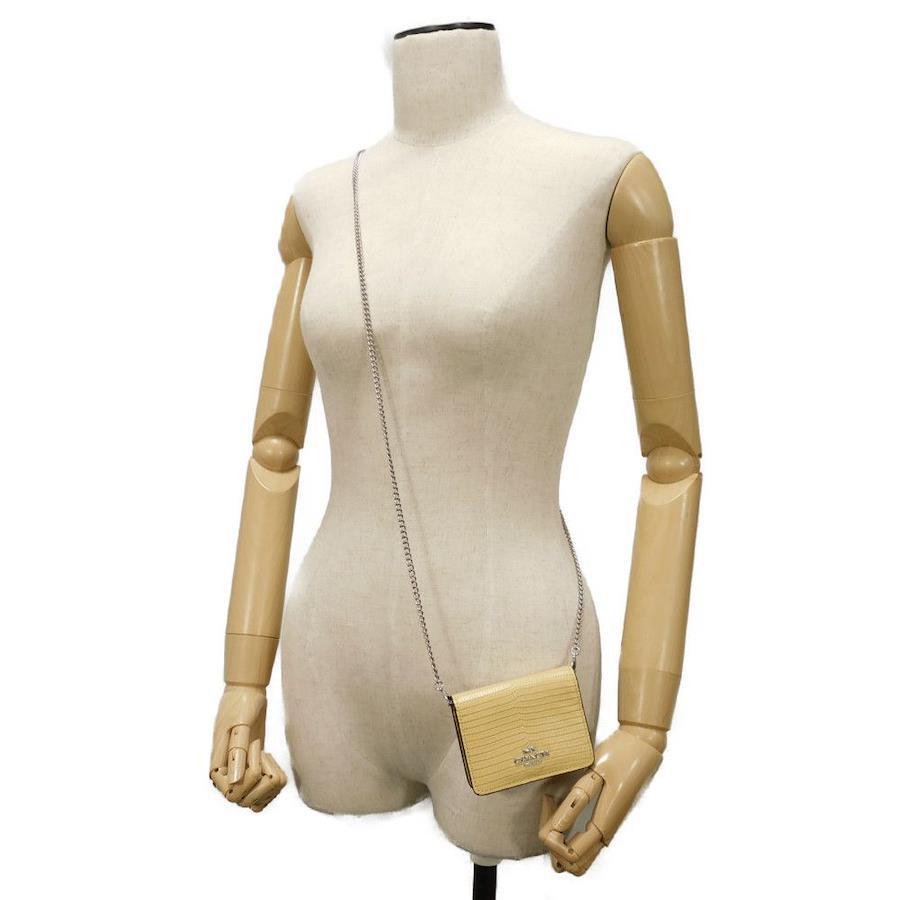 | リザードエンボスドレザーにコーチのロゴメタルがあしらわれた「チェーン ミニ ウォレット」スナップ式カードケースです。チェーンショルダーを取り外して単体としてもお使いいただけます。 |