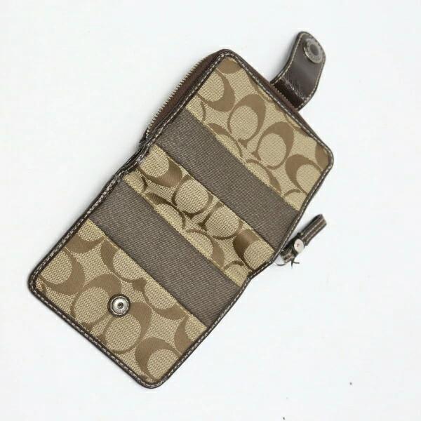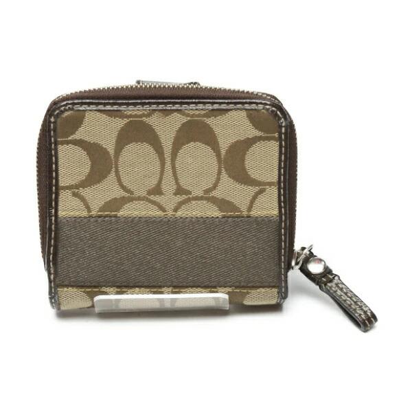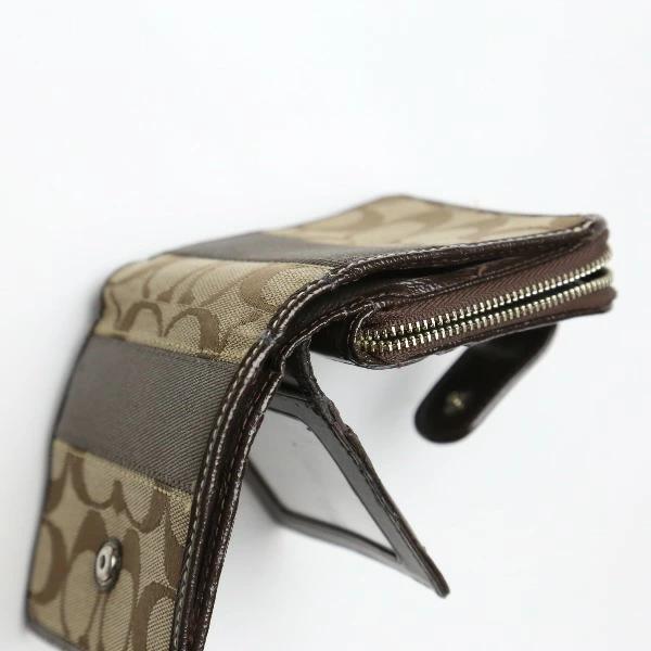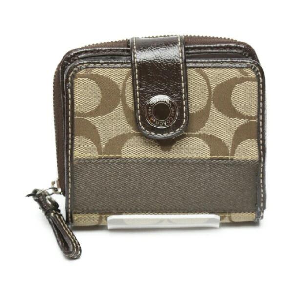 | 二つ折り財布COACH COACHキャンバス×パテント ラウンドファスナー シグネチャーユニセックス ブラウン |
