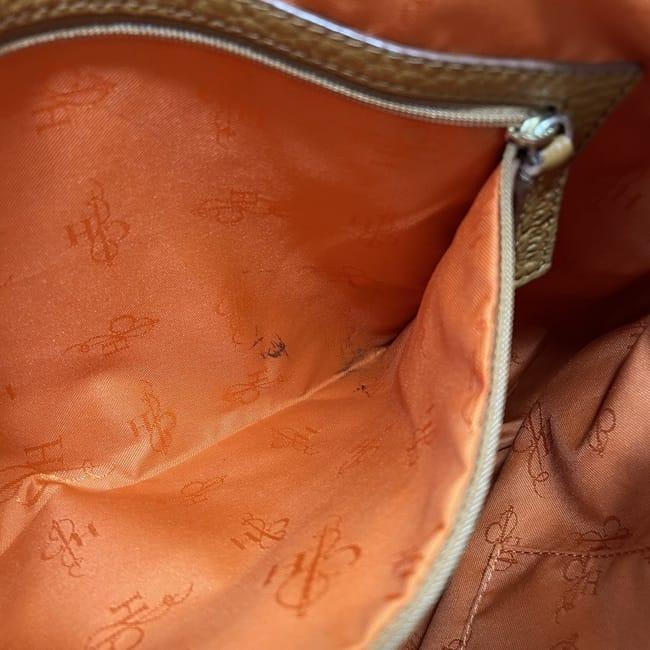 詳細説明:縁や底面に擦れ、表面に多少の擦れ、ハンドルに歪み癖やハンドルコバにひび割れ、ポケット内に汚れなど使用感がございますが比較的綺麗なお品物です。