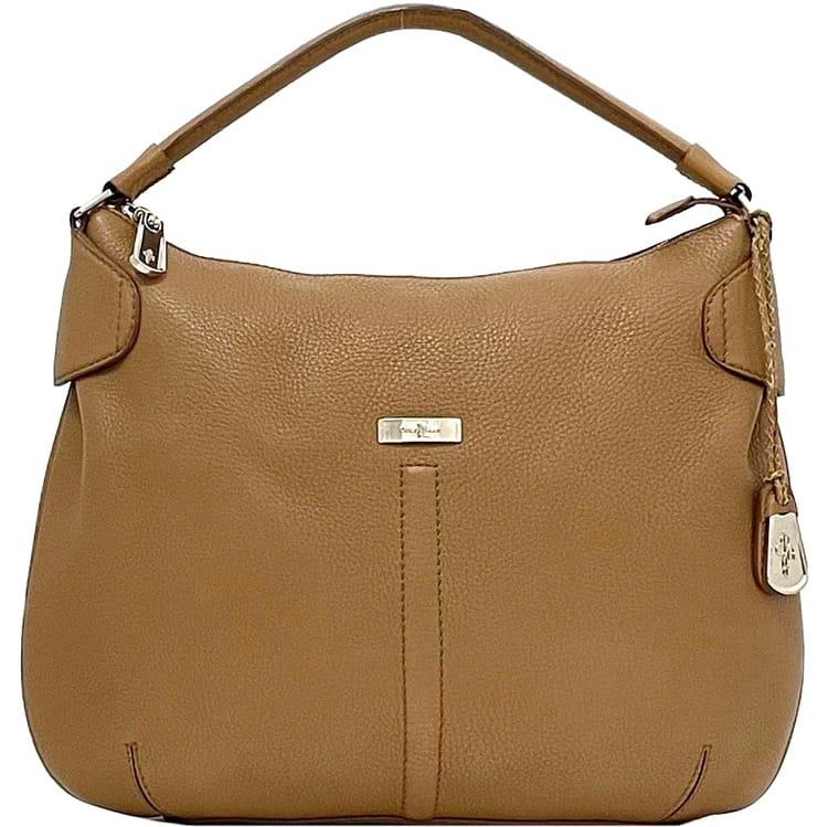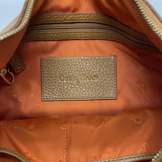 コールハーン セミショルダー バッグ ec-22771 ブラウン シンプル ロゴ プレート 定番 人気 女性 レディース 通勤 通学 仕事 ビジネス バッグ 鞄 お洒落 ワンポイント 革 高級感 美品 レザー 中古 COLE HAAN 軽い ファスナー 肩掛け ブランド 本物 鑑定済み