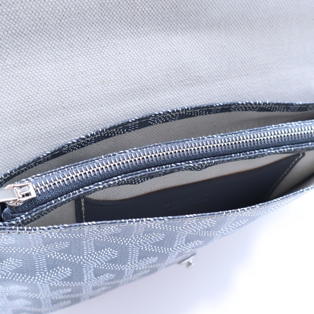 [モデル]プリュメ PVCコーティングキャンバス レザー ポーチ ウォレット ショルダーバッグ ポシェット シルバー金具 グレー
