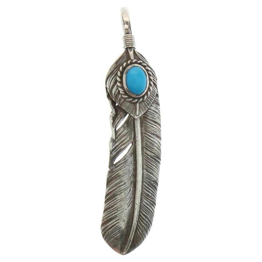 ■商品情報[商品番号]7125I190004[ブランド]goro's(ゴローズ)[モデル]【オールド】上銀銀縄ターコイズ特大フェザー 右向き ペンダントトップ シルバー/ゴールド[サイズ]縦幅:68.35ミリ 横幅:15.08ミリ 重さ:11.36グラム表記サイズ:特大■状態・コンディション[状態ランク]ランク B使用感有り全体的に小傷/くすみ/変色有り