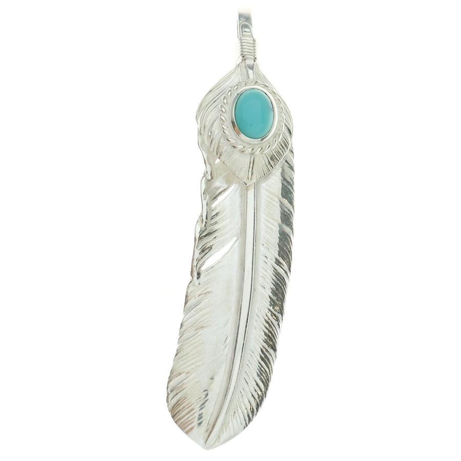 [モデル]【現行】上銀銀縄ターコイズ特大フェザー 右向き ペンダントトップ シルバー