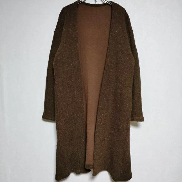 Gauche G134-T042 Wool-Cotton Long Cardigan Knit, Brown Mix, Women's, Pre-owned, 3-1015T