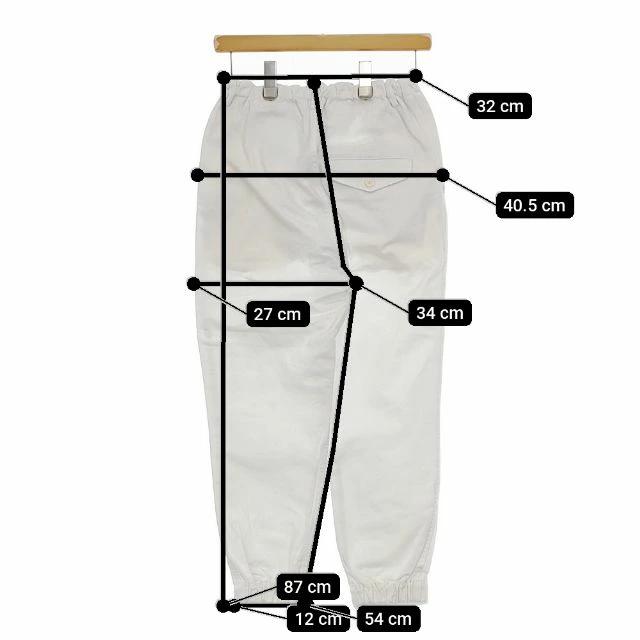 | 仕様 | フロント: ジップ ポケット:あり 透け感: ややあり 裾: シングルステッチ ウエスト調整: ゴム(紐あり) 裏地: なし |