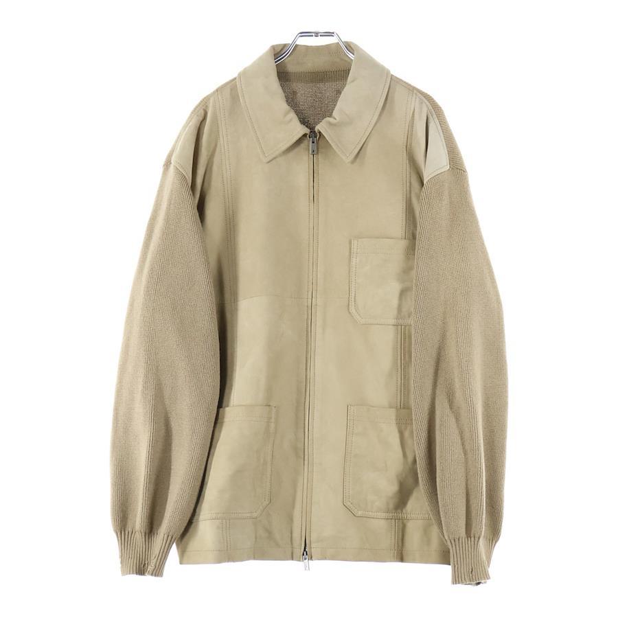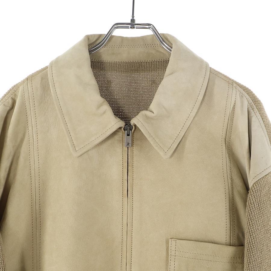 [モデル]NEIL JACKET ネイルジャケット レザーニット切替 ダメージ加工 ジップアップジャケット ベージュ GMP02136P00184955550
