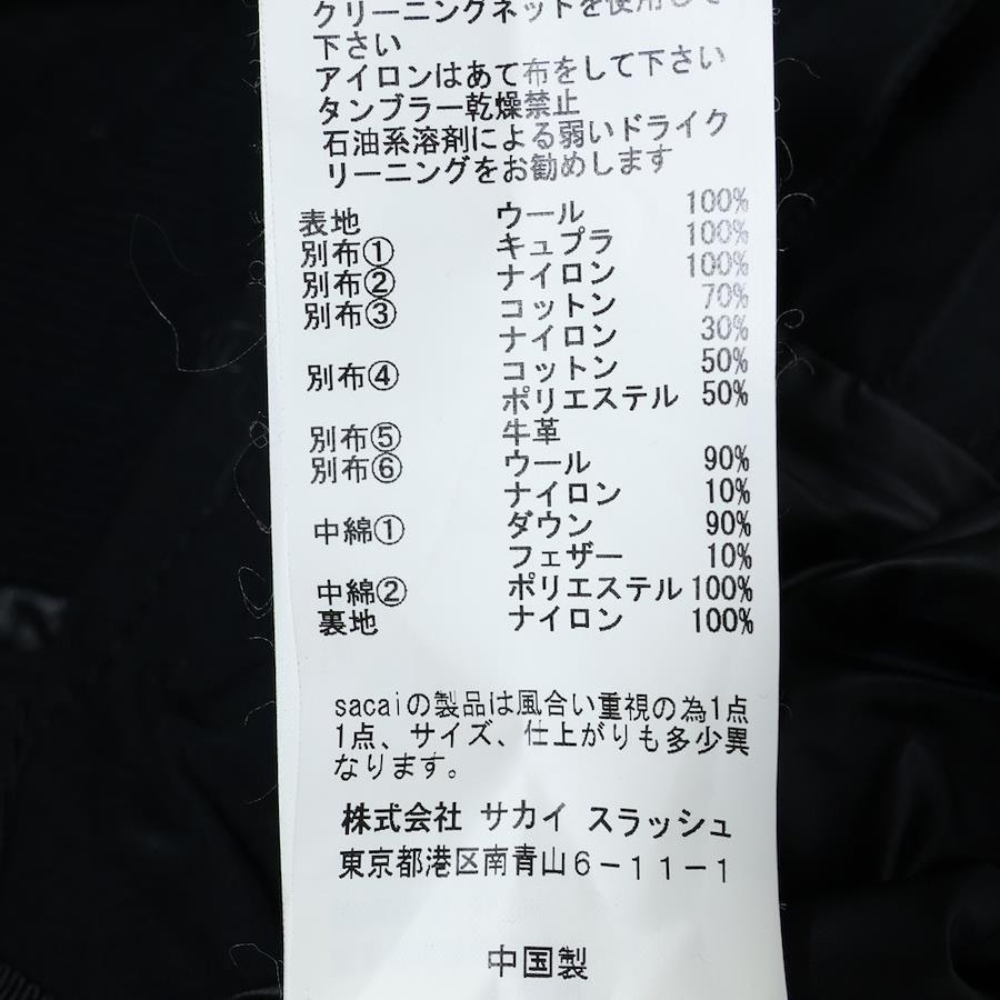 Sacai 18AW Down Zip-Up Short Blouson Wool Jacket Black 18-04034 1 Black