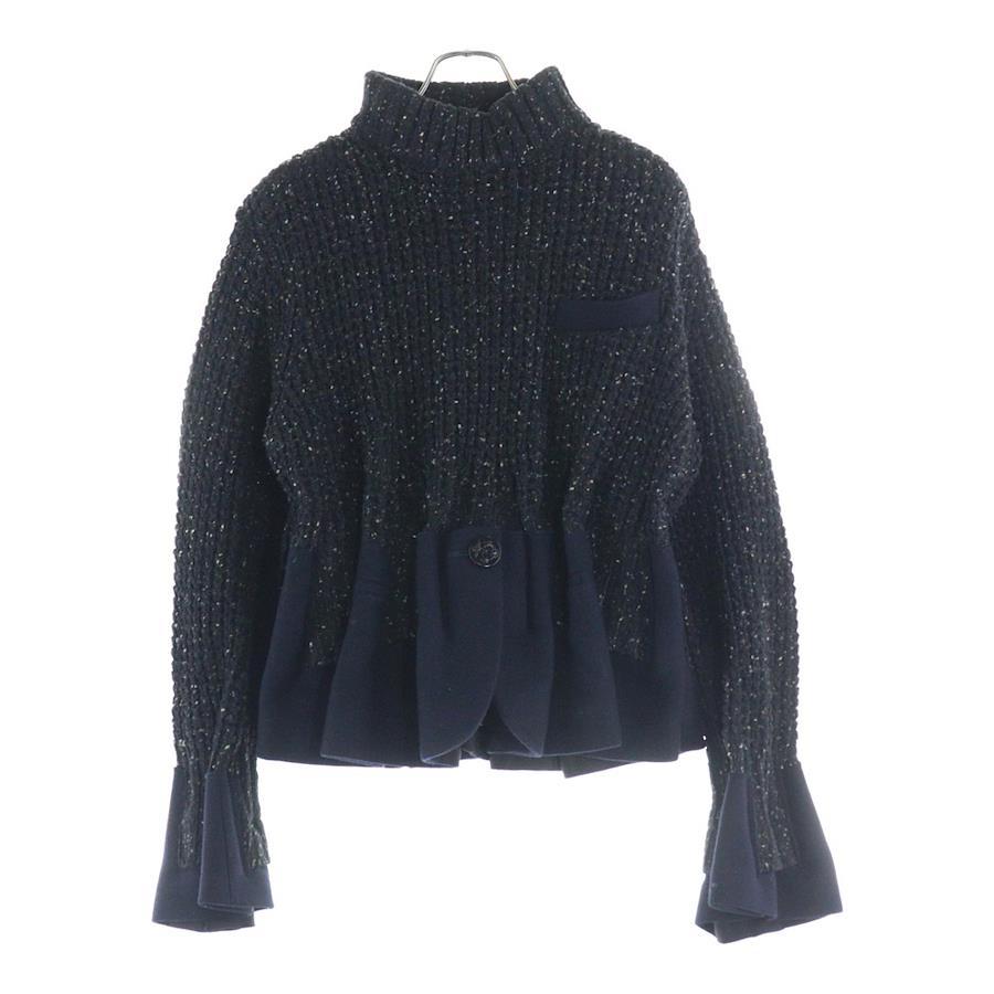 [モデル]19AW コートドッキング 変形 ボリューム ハイネック プルオーバー ニット セーター ブラック/ネイビー レディース 19-04761