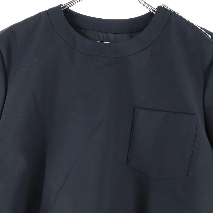 [モデル]23SS SUITING PULLOVER スーチング プルオーバー ドッキング 胸ポケット ショルダージップ 半袖Tシャツ ブラック レディース 23-06904